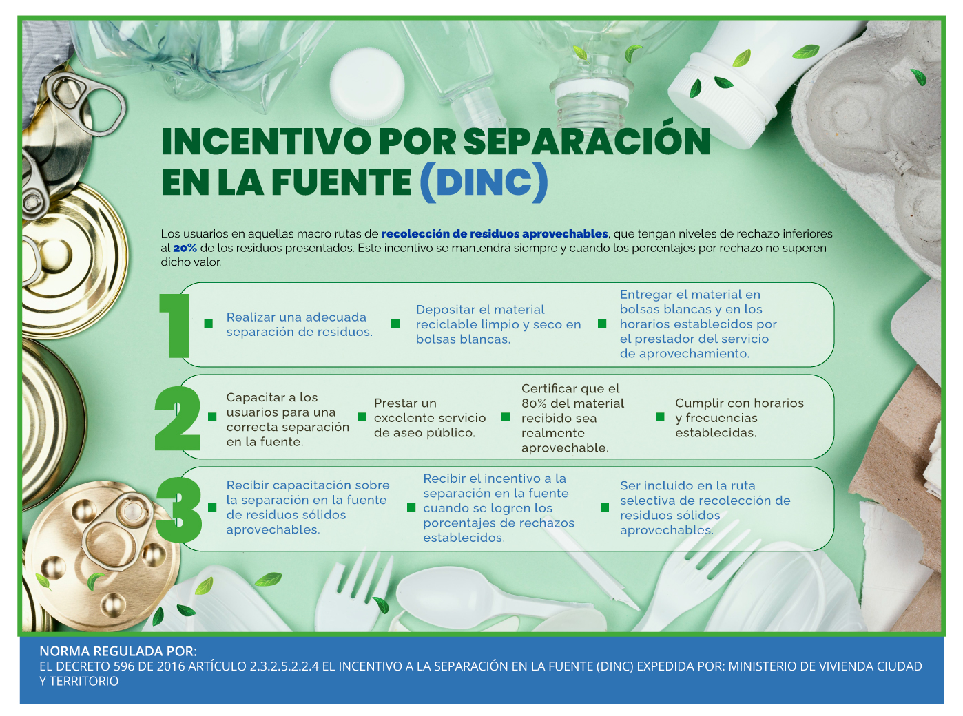En la actualidad la Asociación de recicladores Aseo Nuevo Ambiente cuenta con 83 asociados que son recicladores de oficio y se encuentra en el proceso de formalización con la implementación del Decreto 596 del 2016, prestando los servicios a través de microrutas y macrotas en la recolección, transporte, clasificación y pesaje.